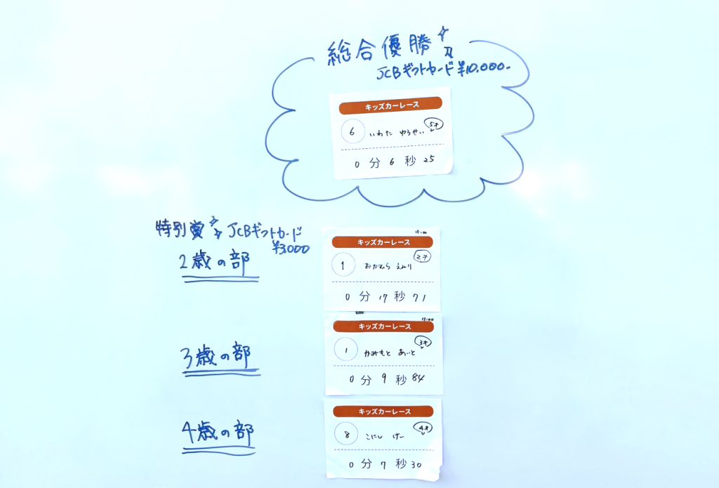 キッズカーレースの結果発表をいたします!