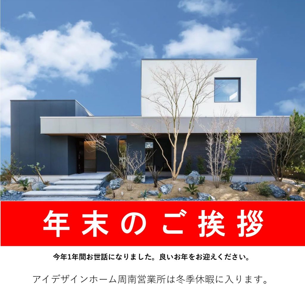 アイデザインホーム周南営業所は2025年12月25日より冬季休暇に入ります。2026年は1月4日から通常営業開始になります。2024年オープンのアイデザインホーム周南展示場から2025年は山口エリアで続々と家がたち始め、見学会等も開催させていただくことができました。