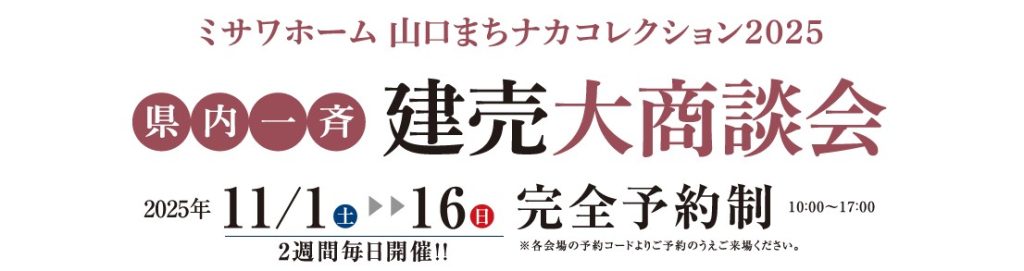 山口県内一斉建売大商談会 2025.11.07 Post Share Hatena Pocket RSS feedly Pin it この記事のタイトルとURLをコピーする ミサワホームを見に行こう! 県内6会場で合計12棟の建売をご覧いただけます。 WEB事前来場予約をいただくと【選べるデジタルギフト5,000円分】と ミサワホームオリジナル【うさぎ陶器】をプレゼントいたします♪ この機会にぜひご来場をお待ちしております。 以下のイベント情報内をご確認ください。↓↓ キャンペーン・イベント・見学会情報 | 山口支店 | ミサワホーム中国 Post Share Hatena Pocket RSS feedly Pin it この記事のタイトルとURLをコピーする