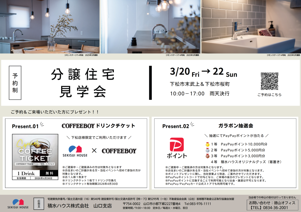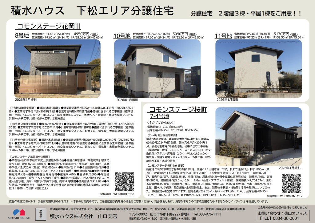 下松市末武上&下松市桜町にて分譲住宅見学会を開催いたします!(予約制)