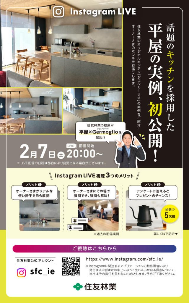 住友林業のオリジナルキッチン「Germoglio」を採用した平屋のオーナー宅をLIVE初公開!
